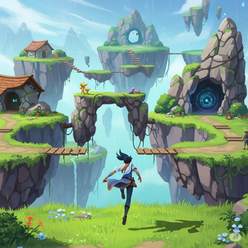 ๐ Vertical Platforming โ Navigate floating worlds suspended in the sky.